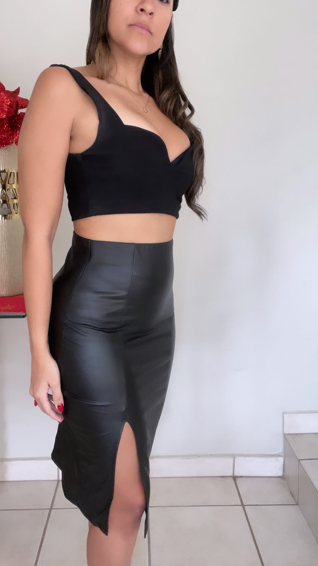 Faux leather pencil skirt || Model wearing SMALL size